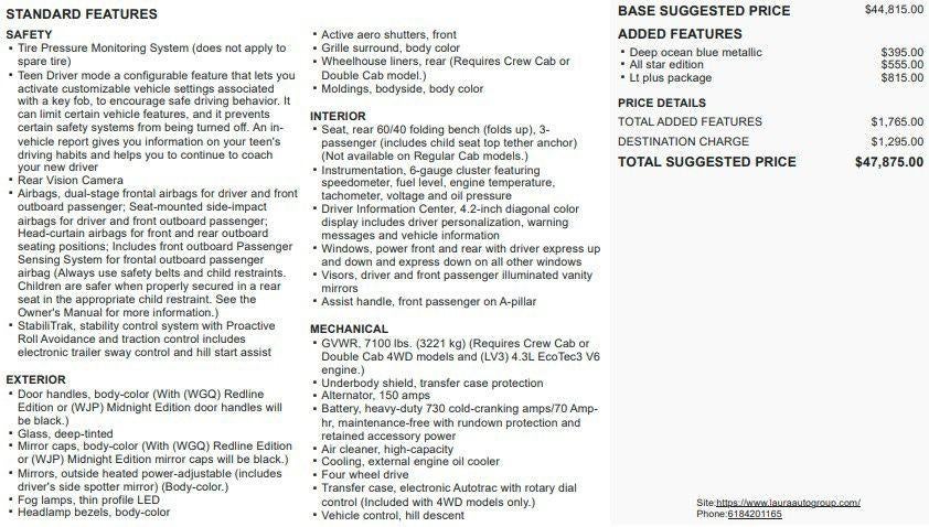 Laura Chevrolet Buick GMC of SullivanDisclaimersYou pay the price listed plus a $620 admin fee, applicable tax, title and license less any extra incentives if available and/or applicable. Please see dealer for additional details.