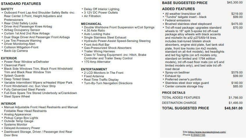 - Vehicle Name: Toyota Tundra 4WD