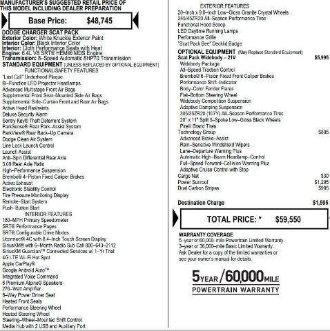 Carfax 1 Owner New Vehicle Trade! Charger R/T, Scat Pack Widebody, 6.4 HEMI, RWD, 8 Speed Automatic, Power Sunroof, Heated Seats, Adaptive Cruise Control, Brembo Brakes, ALPINE Premium Audio, Rear Park Assist, Rear View Camera, Uconnect 4C, Remote Keyless Entry, Power Windows, Power Locks, Power Mirrors. This vehicle has good tires, is in good condition and is ready for many more miles! This Charger R/T has a clean vehicle history report and does not have any accidents. Call us today, this vehicle won't last long at this price 573-677-1310! Laura Automotive Group, serving our communities for over 43 years!! We are a family owned dealership committed to providing our customers the best deals backed by outstanding service!